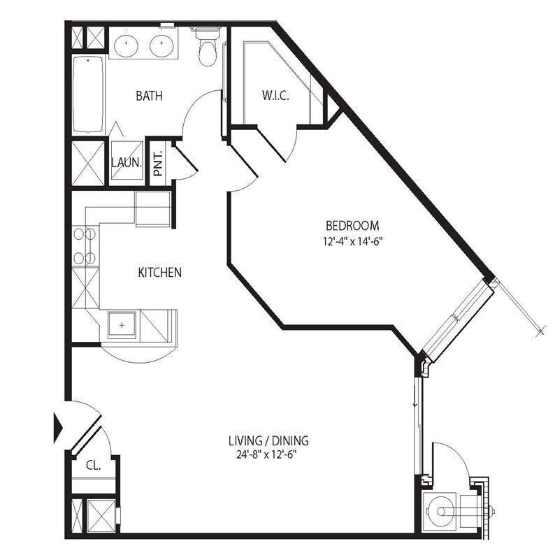 1 Dormitorio, 1 Baño, 745 pies²Galería del Modelo