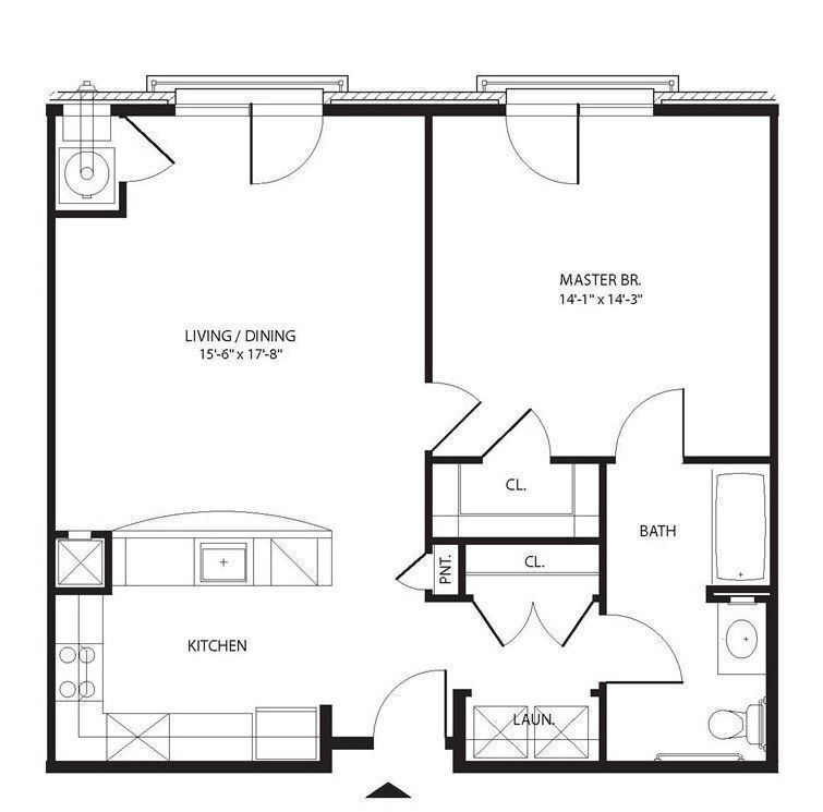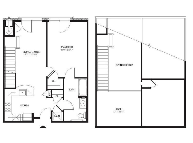 Estudio, 1 Baño, 953 pies²Galería del Modelo