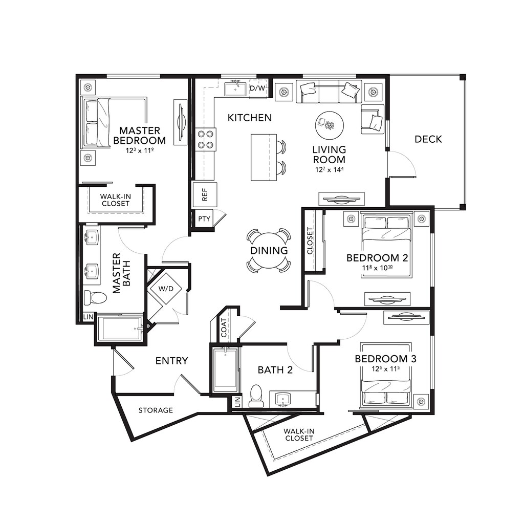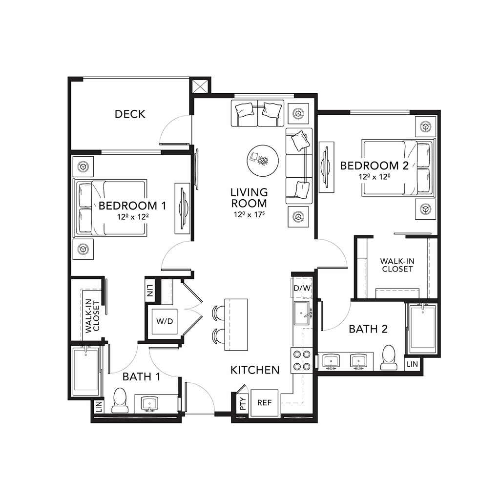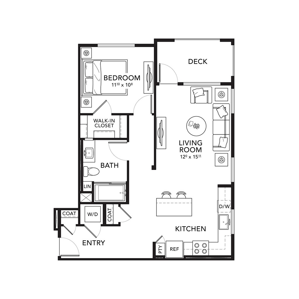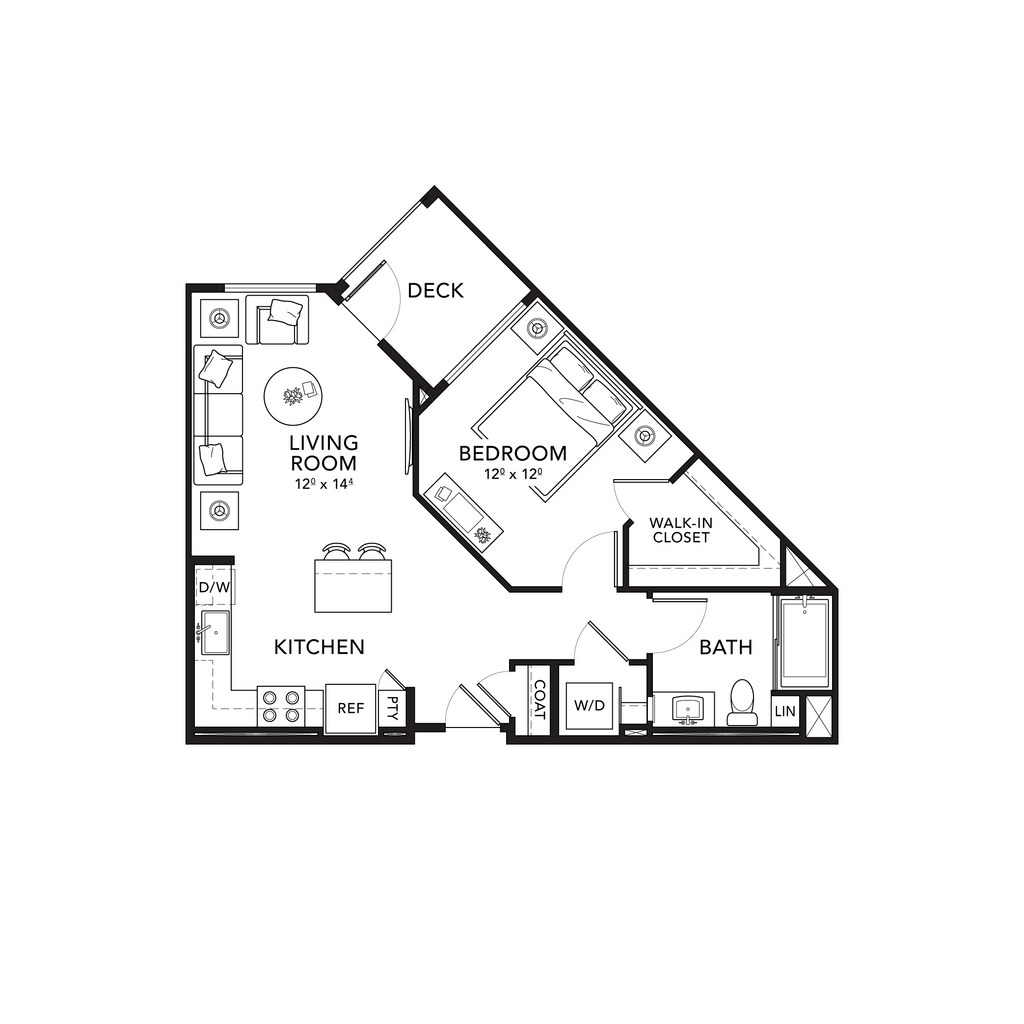 Modelo de apartamento: Plan A2Desde $3,2051 Dormitorio, 1 Baño, 747 sq ftDisponible November 1, 2025![]()