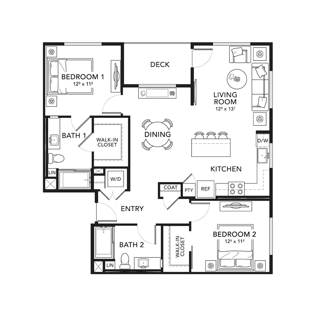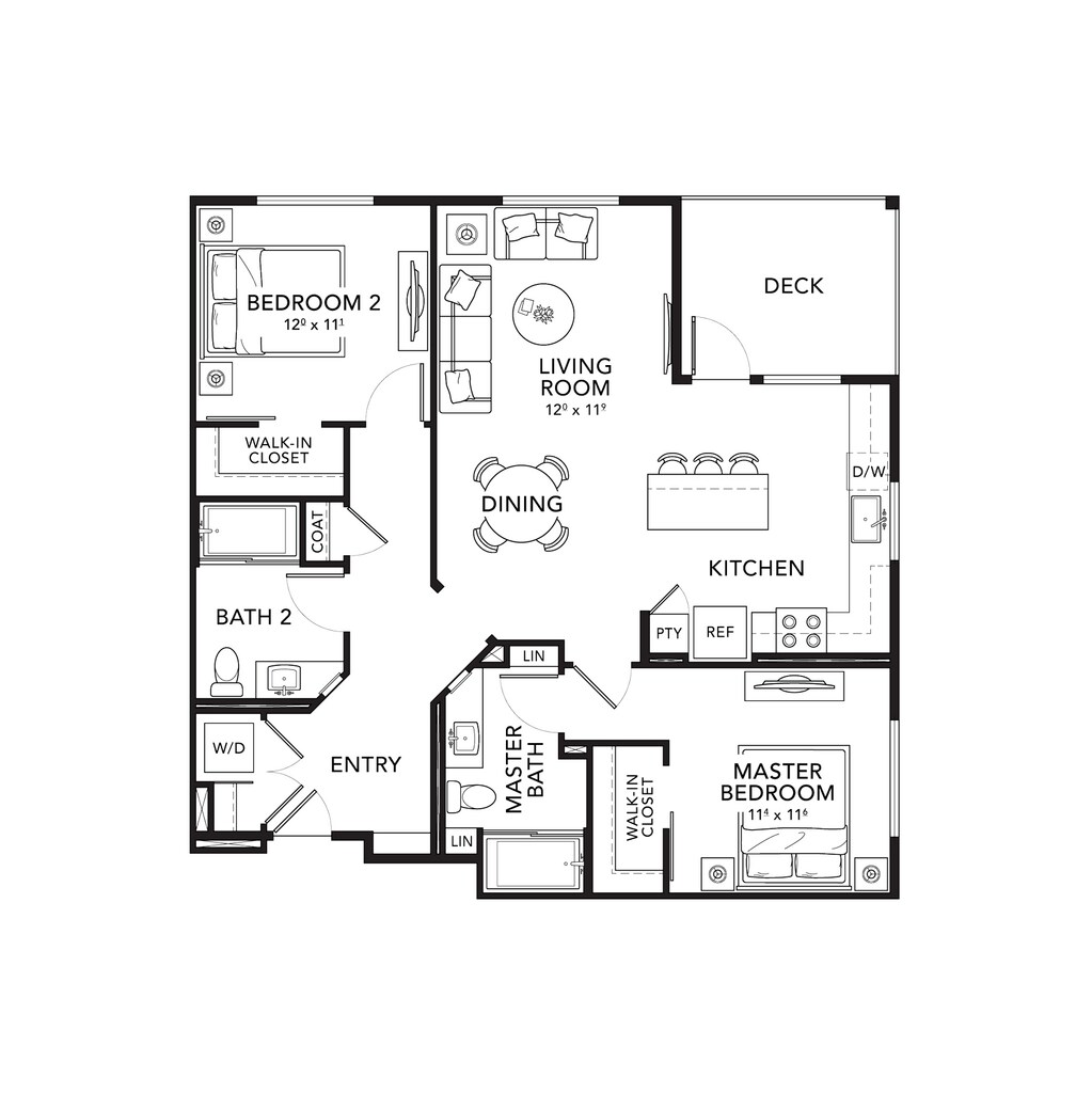 Modelo de apartamento: Plan A2.1Desde $3,3601 Dormitorio, 1 Baño, 859 sq ftDisponible November 1, 2025![]()