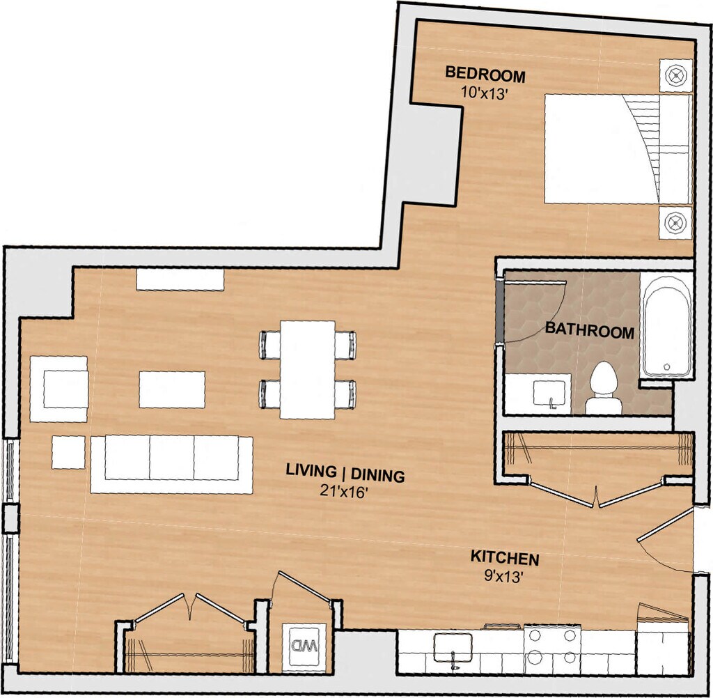 201 5 - Plano Unidad de apartamento: 201-507Modelo de apartamento: 201 5$3,7761 Dormitorio, 1 Baño, 740 sq ftDisponible Ahora