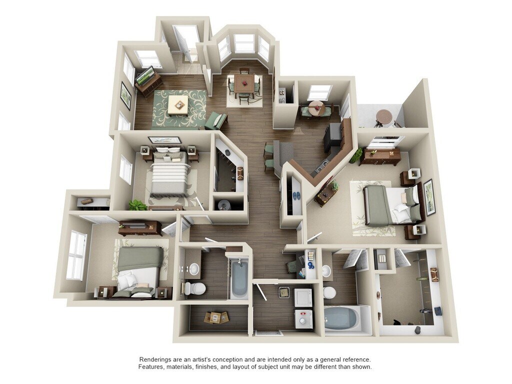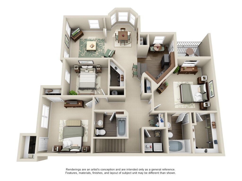 Modelo de apartamento: B3L2 Dormitorios, 2 Baños, 1323 sq ftDisponible Ahora![]()