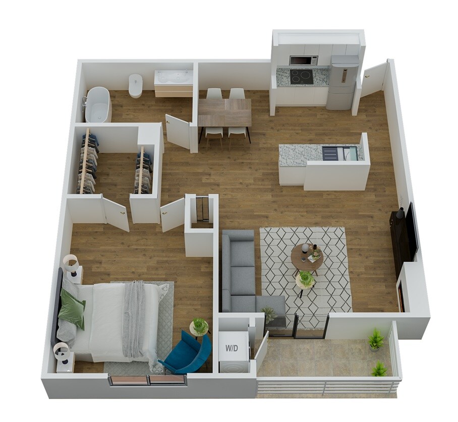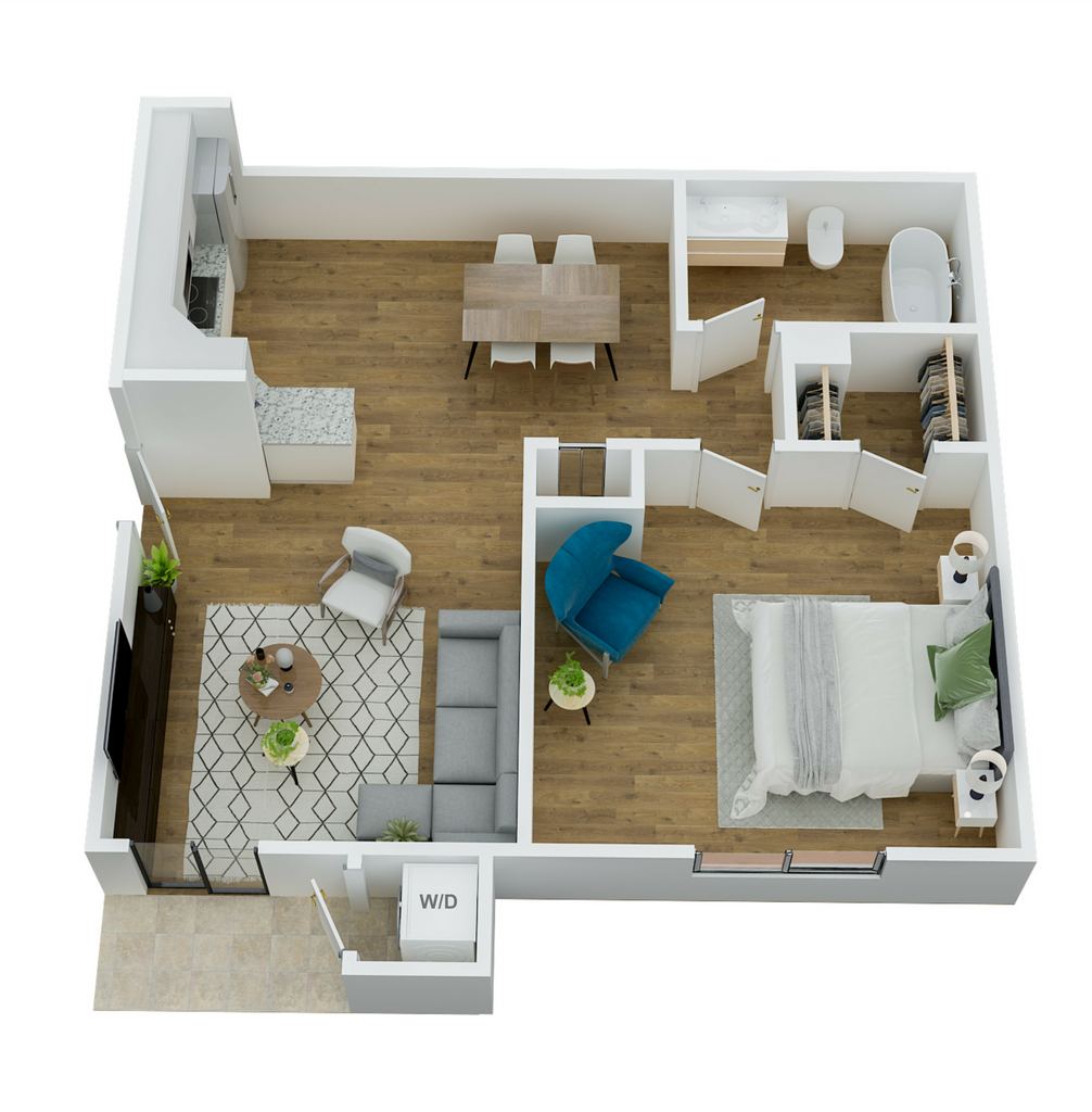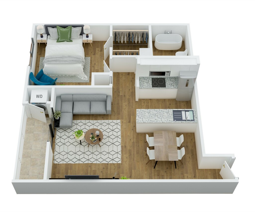 1 Dormitorio, 1 Baño, 662 pies²Disponible AhoraGalería del Modelo