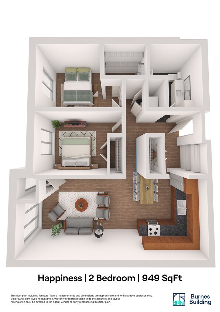 2 Dormitorios, 1 Baño, 949 pies²Galería del Modelo