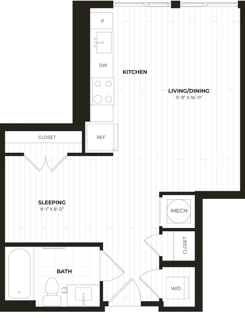 Studio-U21 - Plano Unidad de apartamento: 0921Modelo de apartamento: Studio-U21$1,767Estudio, 1 Baño, 467 sq ftDisponible Ahora![]()