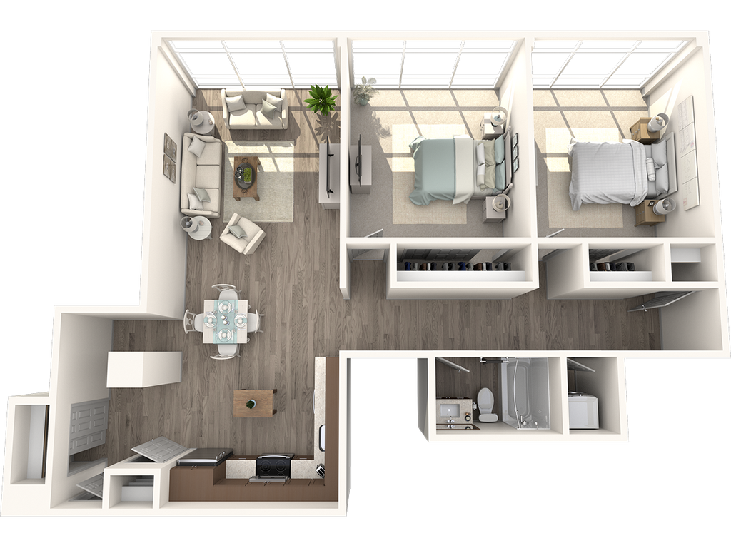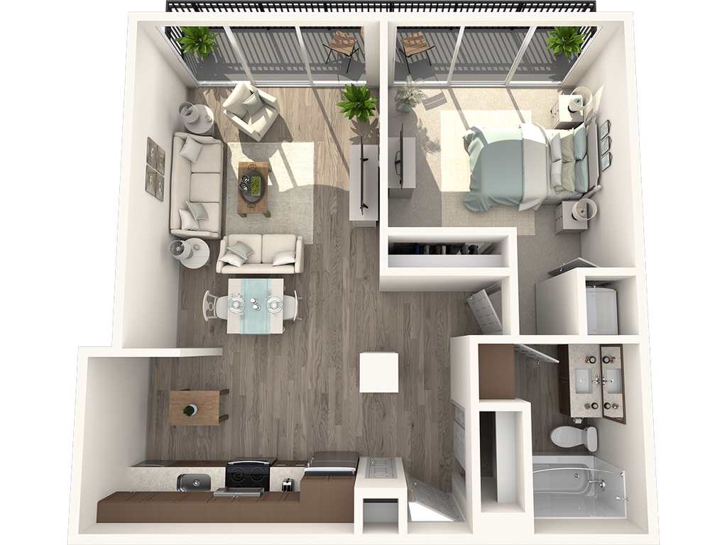 1 Dormitorio, 1 Baño, 800 pies²Disponible AhoraGalería del Modelo