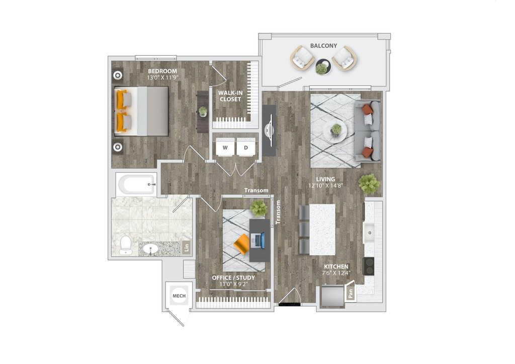 1 Dormitorio, 1 Baño, 720 pies²Disponible AhoraGalería del Modelo