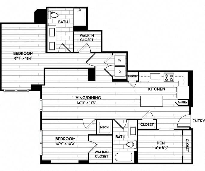 Modelo de apartamento: 11S1Desde $3,1051 Dormitorio, 1 Baño, 758-759 sq ftDisponible AhoraPlanos3D Tours![]()
