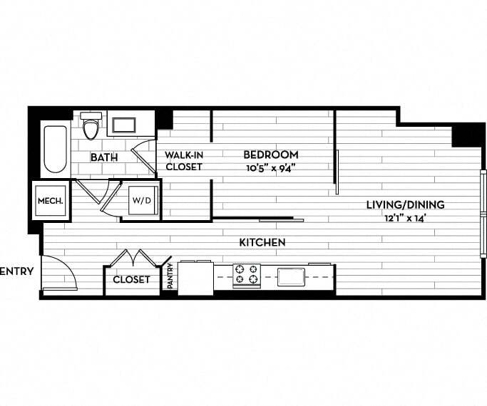 Estudio, 1 Baño, 623-642 pies²Disponible May 7Galería del Modelo