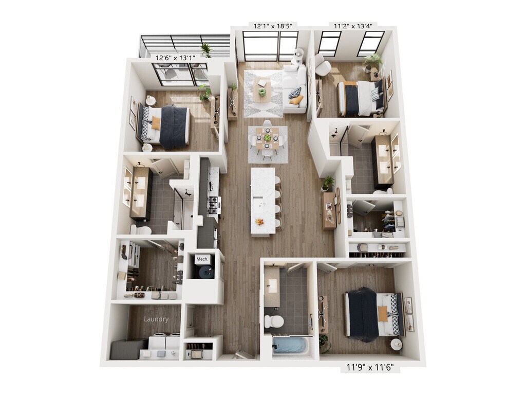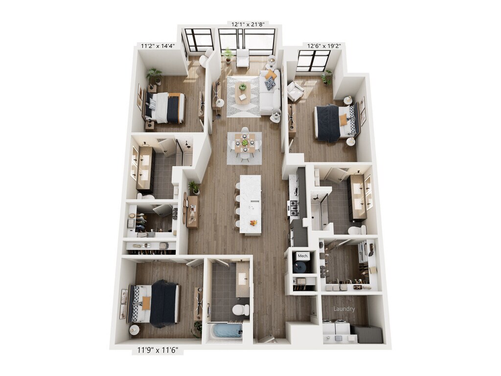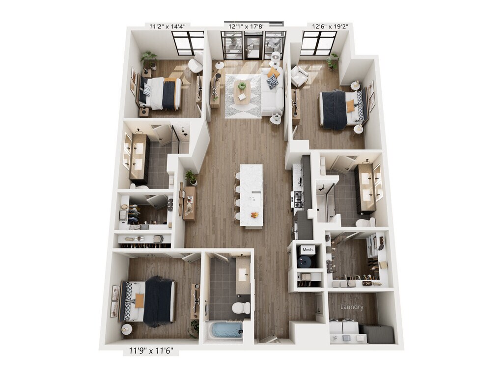 Laurel - Plano 1 Unidad de apartamento: 1013Modelo de apartamento: Laurel$2,7191 Dormitorio, 1 Baño, 889 sq ftDisponible AhoraPlano: Ivy