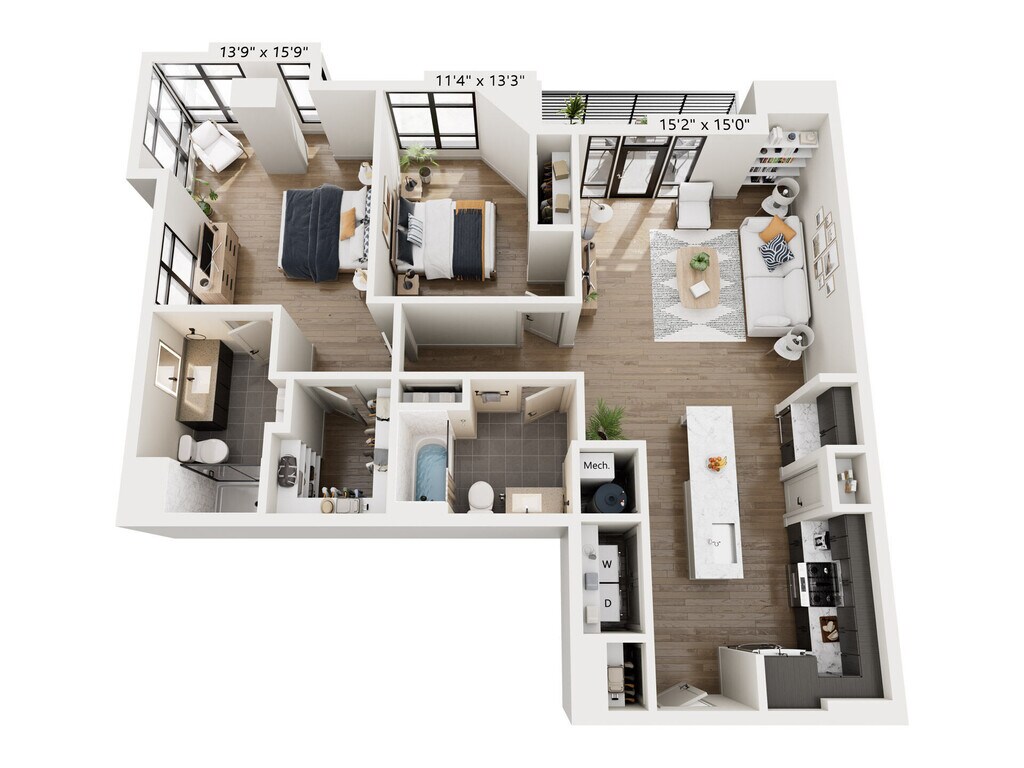 1 Dormitorio, 1 Baño, 958 pies²Disponible AhoraEl más grandeEsta opción tiene las unidades más grandes para este modeloGalería del Modelo