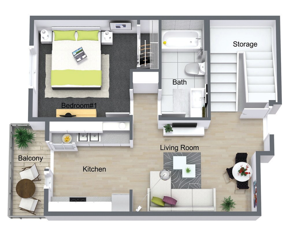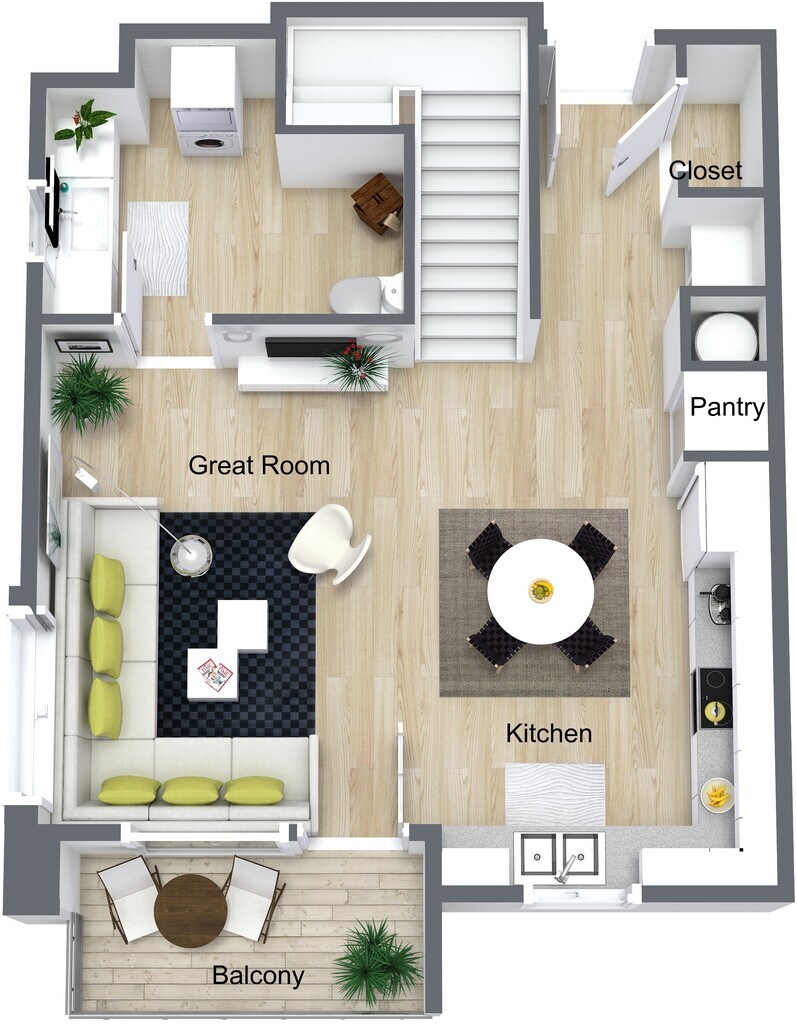 1 Dormitorio, 1.5 Baños, 800 pies²Galería del Modelo