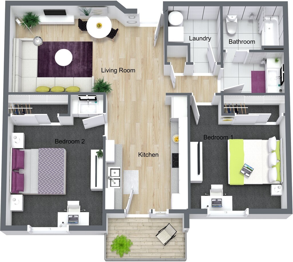 2 Dormitorios, 1 Baño, 1170-1196 pies²El más grandeEsta opción tiene las unidades más grandes para este modeloGalería del Modelo