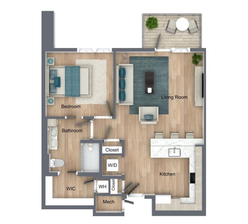 1 Dormitorio, 1 Baño, 1099 pies²Disponible March 15, 2026Galería del Modelo