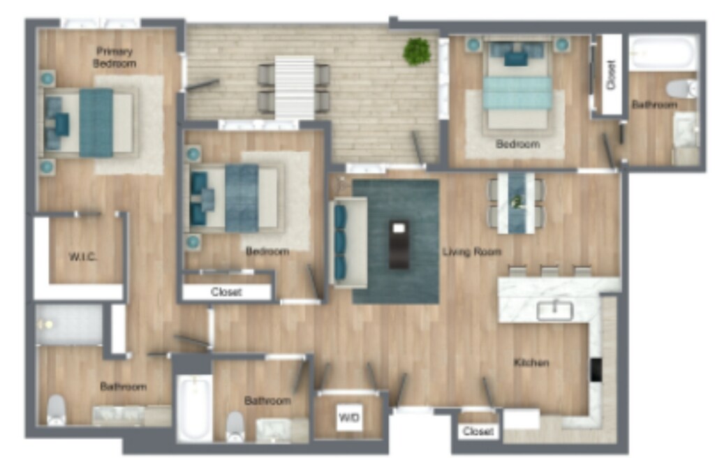 Modelo de apartamento: The Driftwood$2,9001 Dormitorio, 1 Baño, 1136 sq ftDisponible April 15, 2026![]()