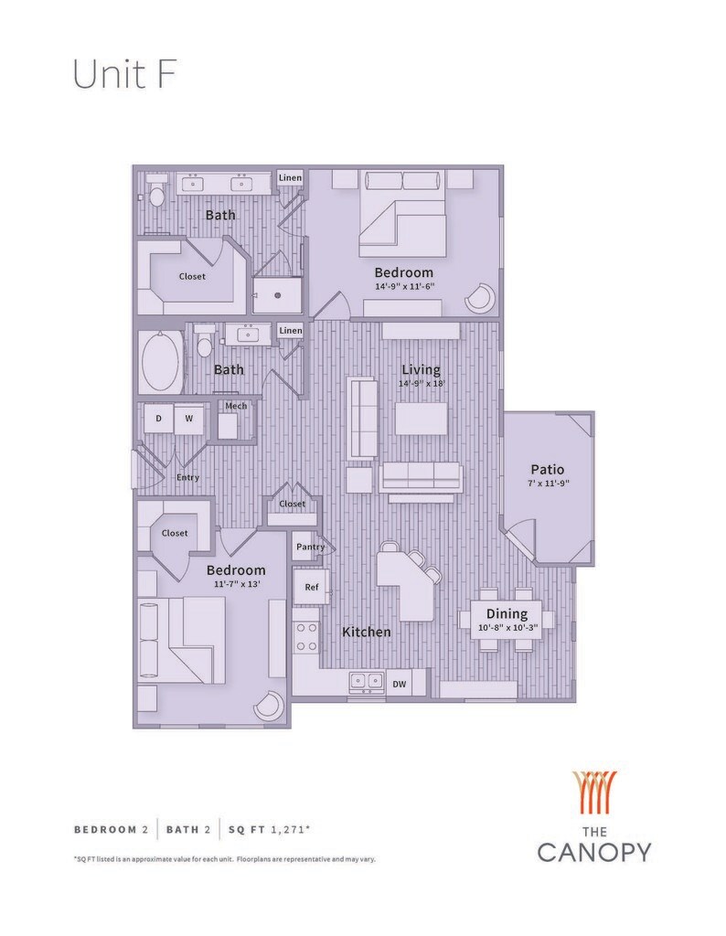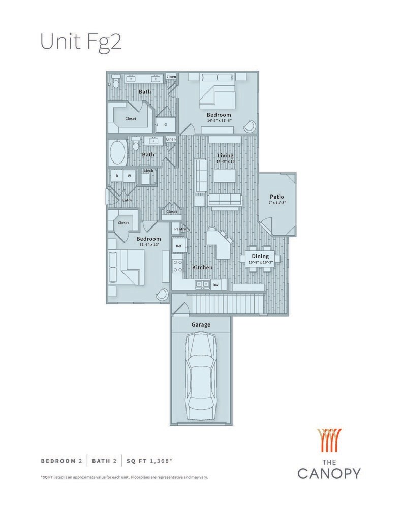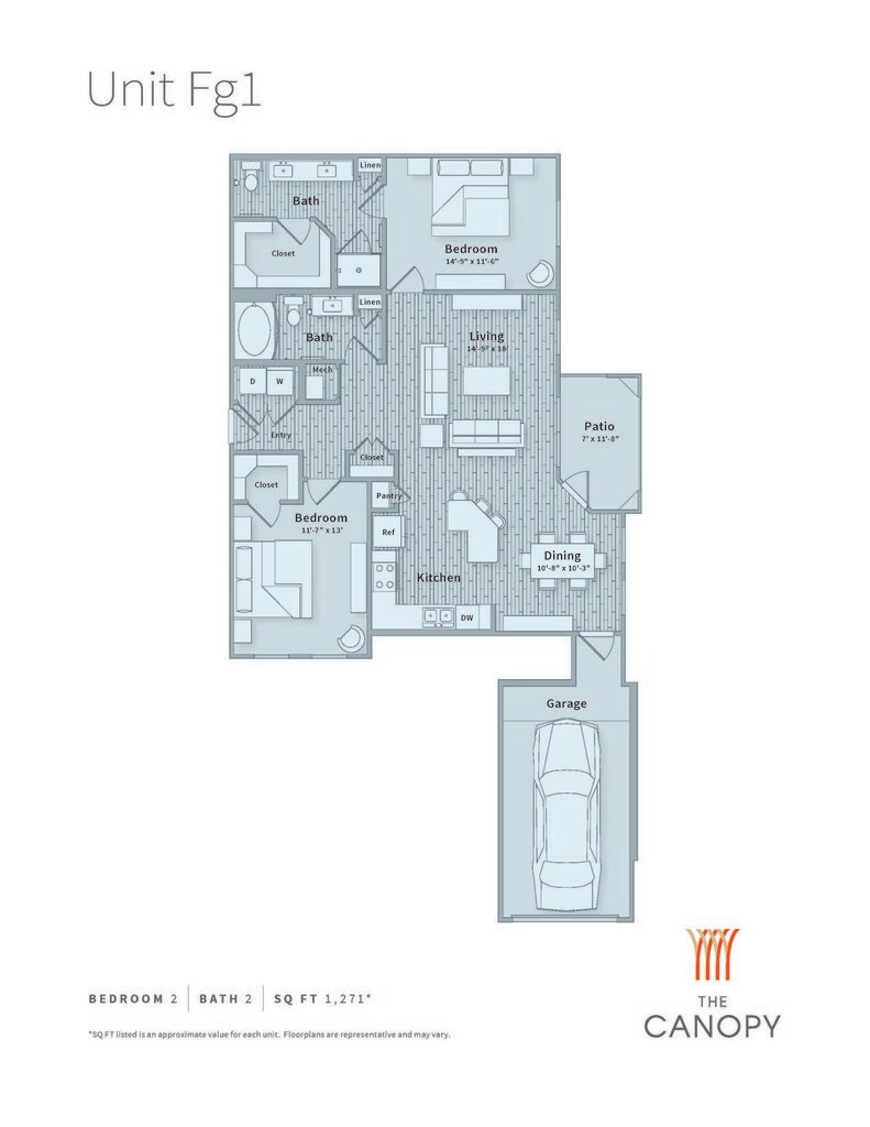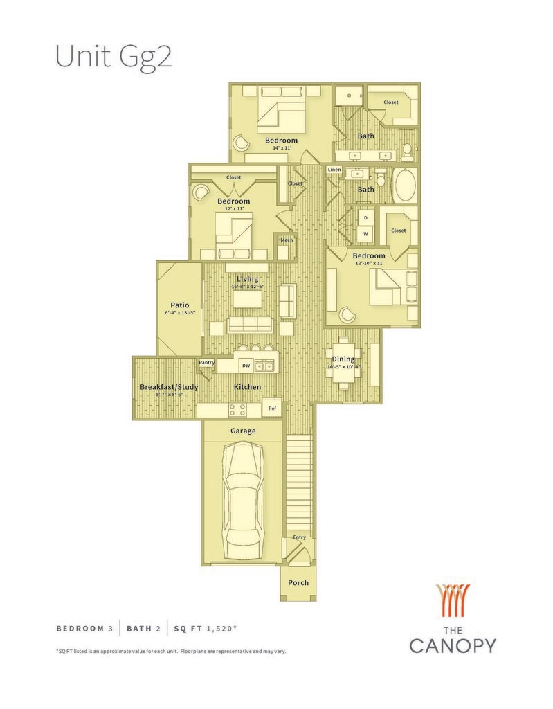 September 11, 2021We have been at The Canopy since just after it opened, some of the earlier renters here, so we have good experience. We love our home at The Canopy. The staff here is Personable, professional, and always helpful and make us feel like part of their family. The facility and all the amenities are very nice and high end compared to our last apartments we stayed in The Woodlands. The pool and spa are resort quality with accompanying fire pit and adjacent pond with a walking path that we have used ...frequently. For more adventure we have explored nearby City Place nature trails, which you can actually walk to, a long walk, from the apartment. The clubhouse has a home like feeling, welcoming, with a professionally laid out mail room, electronic scan package receipt lockers for pickup of Amazon etc. we have a nice workout facility, a reading room filled with an array of books, in a virtual golf activity. There are also plenty of places inside to hang out and relax. Our apartment is a three bedroom two bath with single attached garage. It is very modern and high end with granite countertops and all high-end appliances. Everything is well designed. We even have a private patio, our own little mini yard. Experience here has been the really good, and Sophia who helped sign us up when we started here is great and continues to be our daily go to person for anything we need. Parking is tight, but they are working on solutions for this as we speak, and because of the owner I am confident they will make this great too. I have nothing but compliments about The Canopy and highly recommend it!Leer MásReseña de Apartments.com