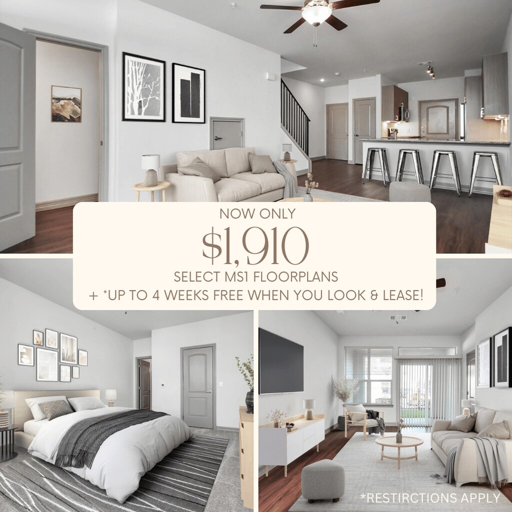 Look and Lease Special: Up to 4 Weeks Free Plus Waived $250 Holding Fee! (select units, restrictions apply)