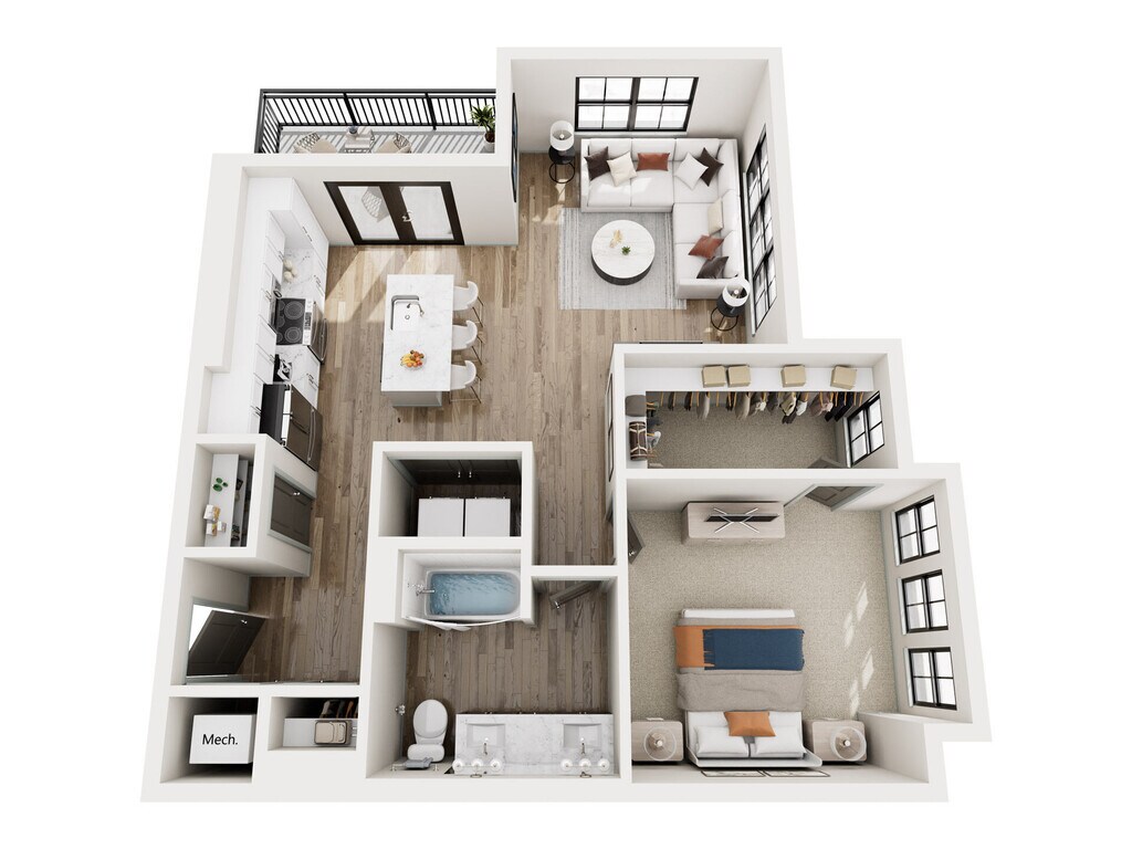 1 Dormitorio, 1 Baño, 735 pies²Disponible AhoraGalería del Modelo