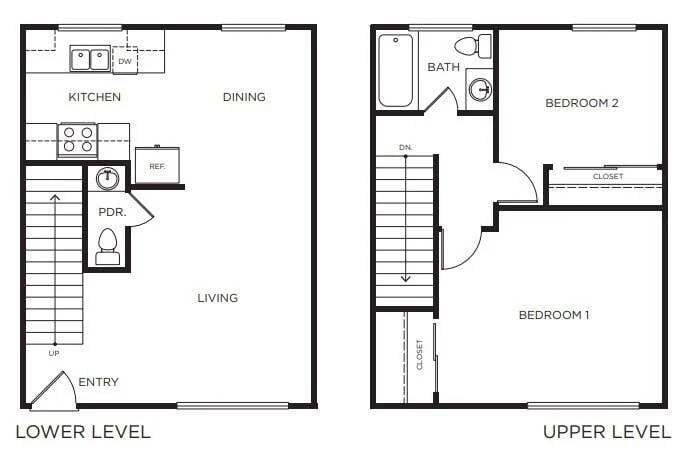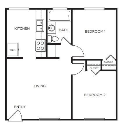 Halsey 1-Bedroom - Plano 1 2 Dormitorios