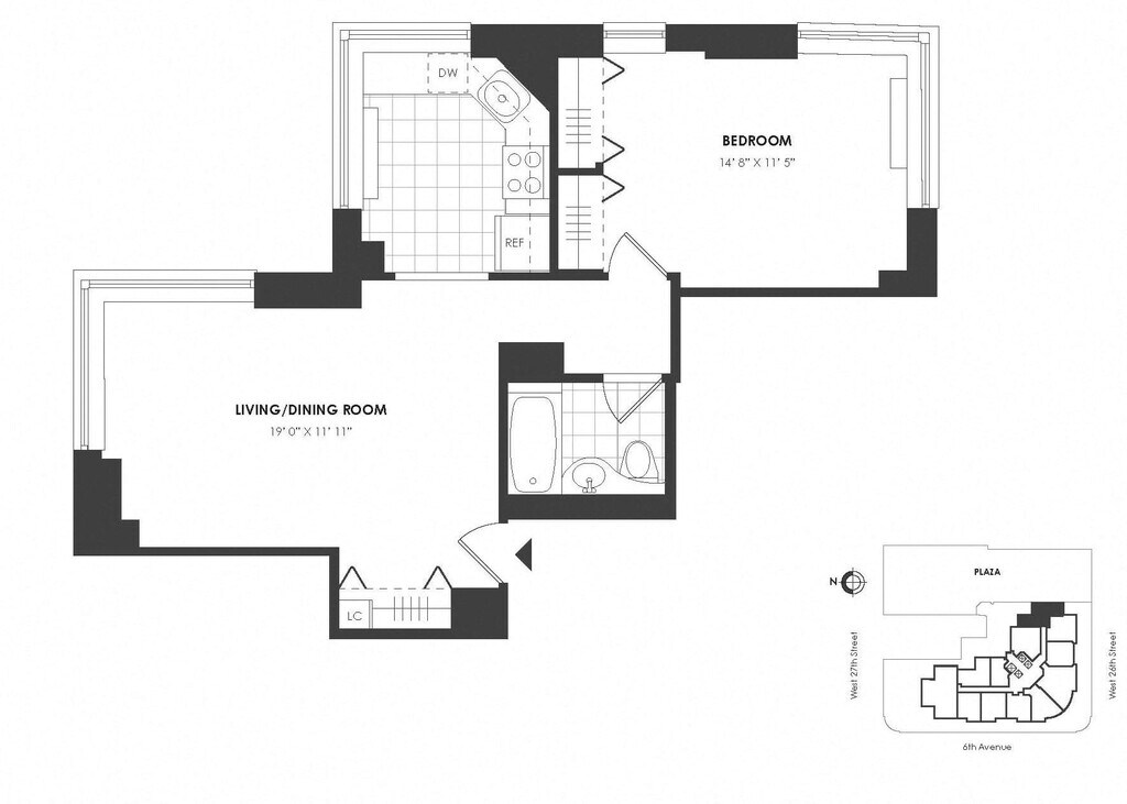 A5 - Plano 1 Unidad de apartamento: 24AModelo de apartamento: A51 Dormitorio, 1 Baño, 662 sq ftDisponible AhoraPlano: A12