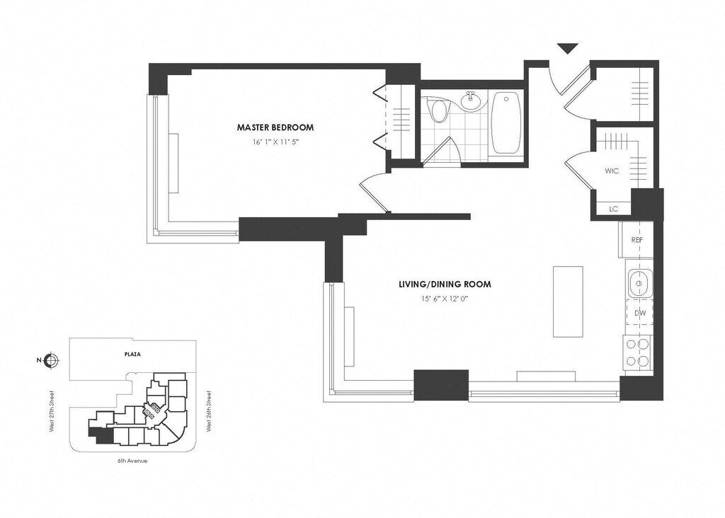 1 Dormitorio, 1 Baño, 586 pies²Disponible AhoraGalería del Modelo