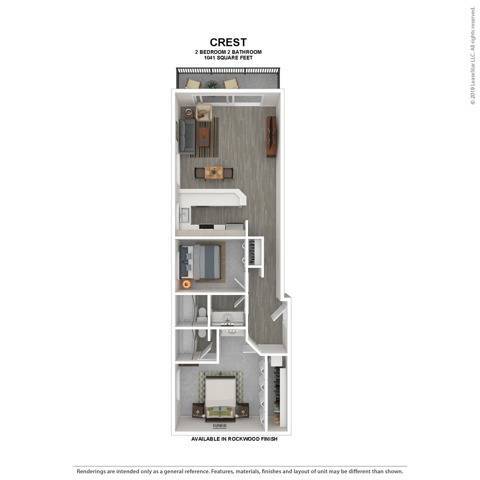 2 Dormitorios, 1 Baño, 1004 pies²Galería del Modelo
