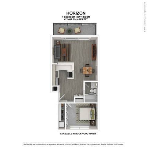 Modelo de apartamento: Horizon - Renovated1 Dormitorio, 1 Baño, 679 sq ftNo Disponible![]()