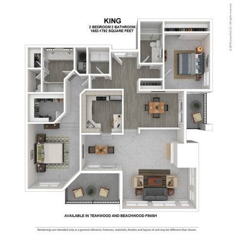 1 Dormitorio, 2 Baños, 1432 pies²Galería del Modelo