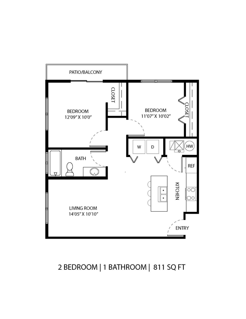 2 Dormitorios, 1 Baño, 811 pies²Disponible AhoraGalería del Modelo
