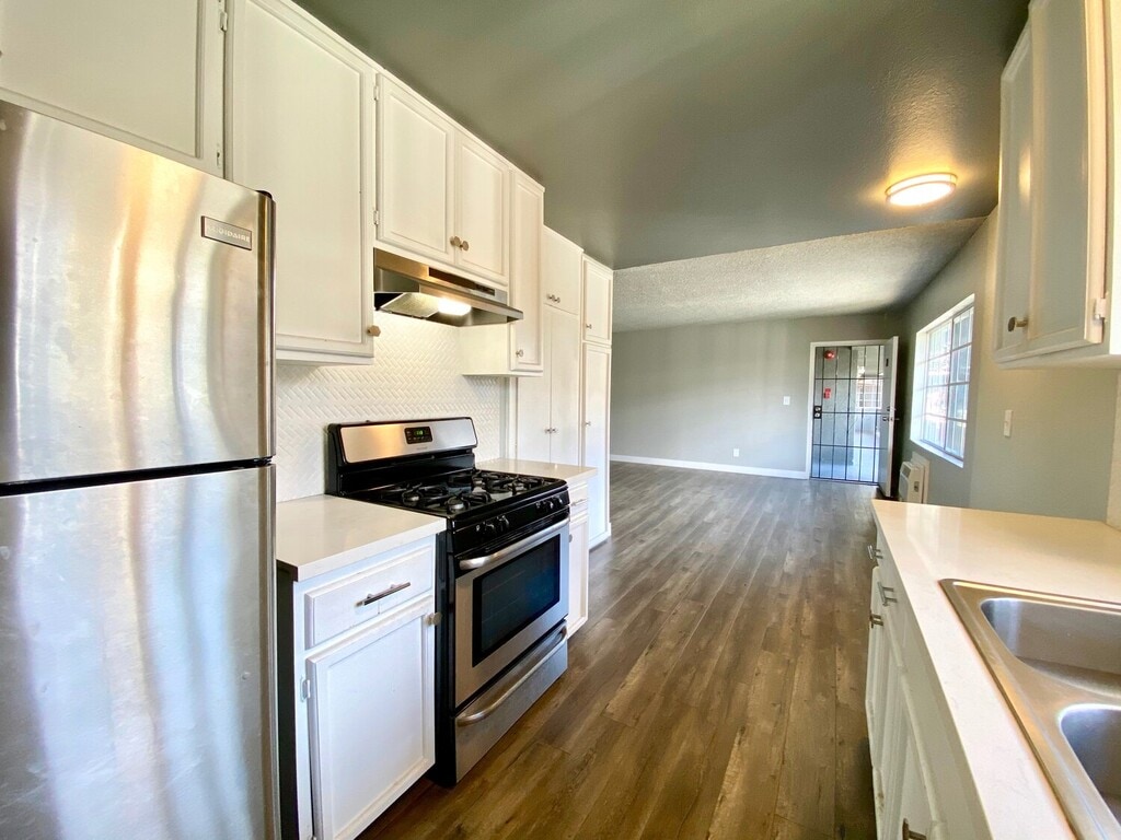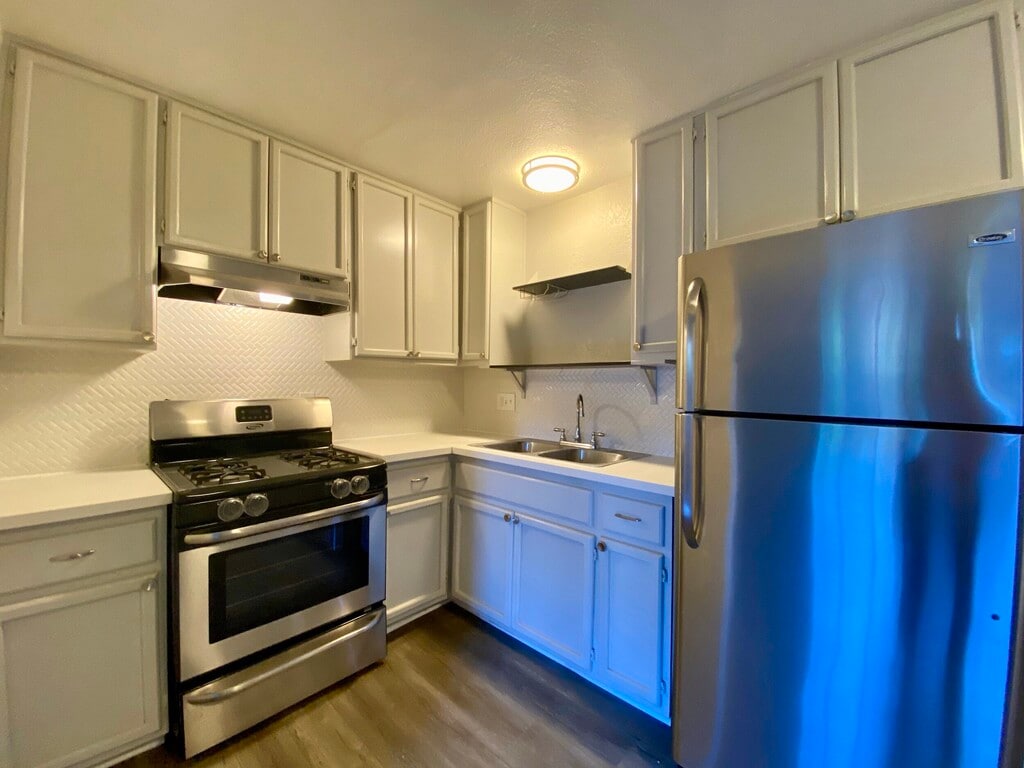 Apartamentos remodelados de 2 HAB actualizados disponibles que admiten mascotas y que cuentan con una ubicación asequible y privilegiada en Hollywood. ¡Pisos de madera noble y electrodomésticos de acero inoxidable en cada apartamento! ¡Super transitable a pie! A 2 minutos a pie de tiendas en Sunset Blvd., cafés y Emerson College. Apartamentos renovados en esquina en el último piso. Renovado con cocina completamente nueva, hermosas placas para salpicaduras de azulejos Herringbone blanco perla y electrodomésticos de acero inoxidable. Muy espaciosa sala de estar con una gran cantidad de espacio de almacenaje, además de un cómodo armario de utilidades. Apartamento en esquina con vista delantera al patio y a la calle. Ambas habitaciones ofrecen una gran cantidad de espacio de guardarropas y una vista a la ciudad estilo Hollywood.