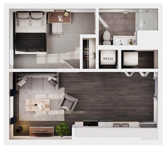 Estudio, 1 Baño, 322 pies²Disponible AhoraGalería del Modelo