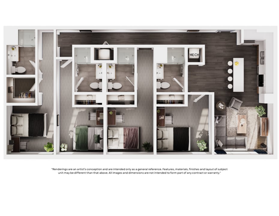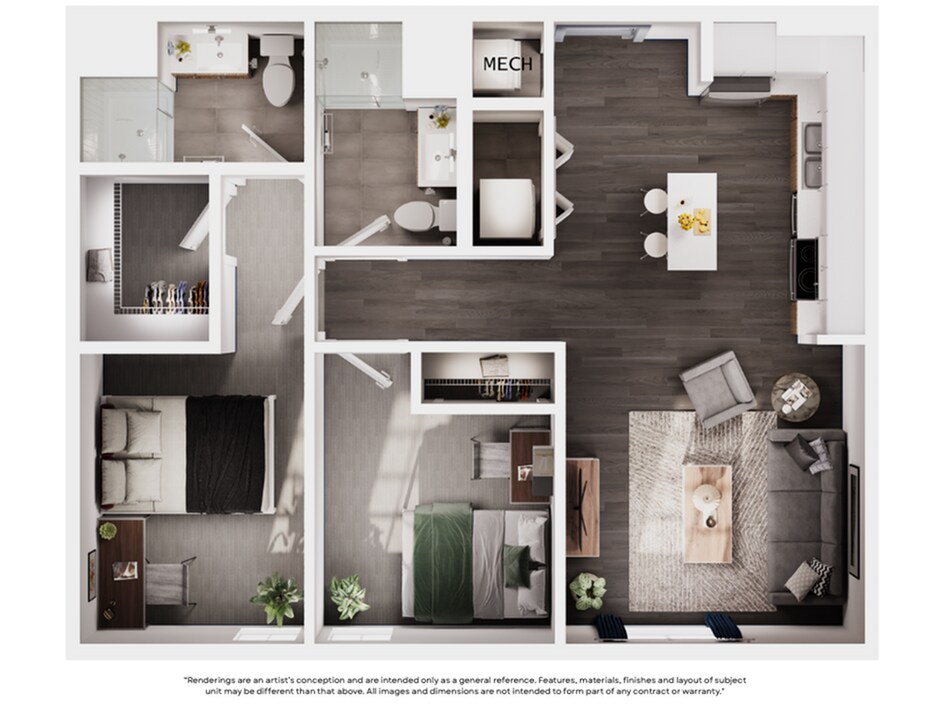 - Estudio, apartamentos de 1, 2, & Planos de planta de 4 habitaciones