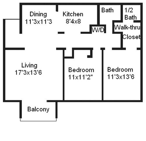2 Bedroom 1.5 Bathroom 1160 Sq Ft