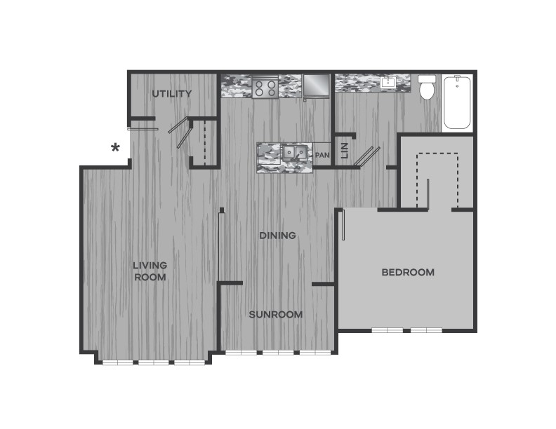 Modelo de apartamento: FounderDesde $1,0451 Dormitorio, 1 Baño, 707 sq ftDisponible Ahora![]()