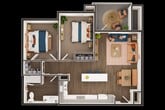 2 Dormitorios, 1 Baño, 835-864 pies²Disponible AhoraGalería del Modelo