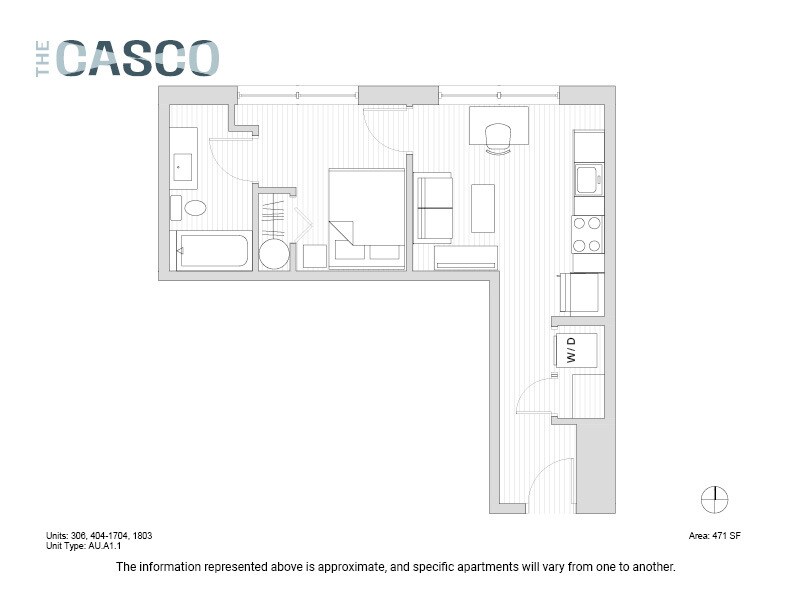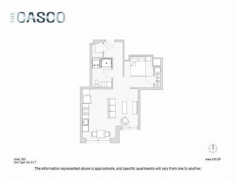 The Casco - Cushing Island - Plano 1 Unidad de apartamento: 505Modelo de apartamento: The Casco - Cushing Island$2,3651 Dormitorio, 1 Baño, 544 sq ftDisponible AhoraThe Casco - Sebago Lake