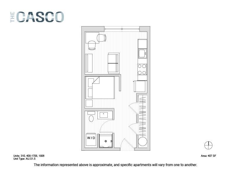 Modelo de apartamento: The Casco - Back Cove WorkforceLlame para PreciosEstudio, 1 Baño, 398 sq ftNo Disponible![]()