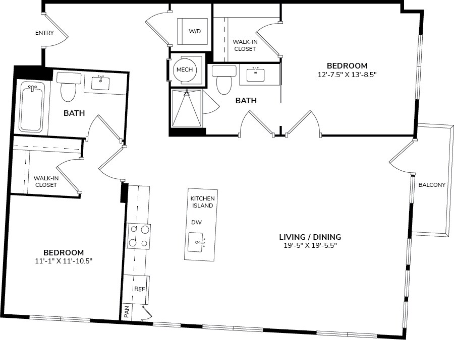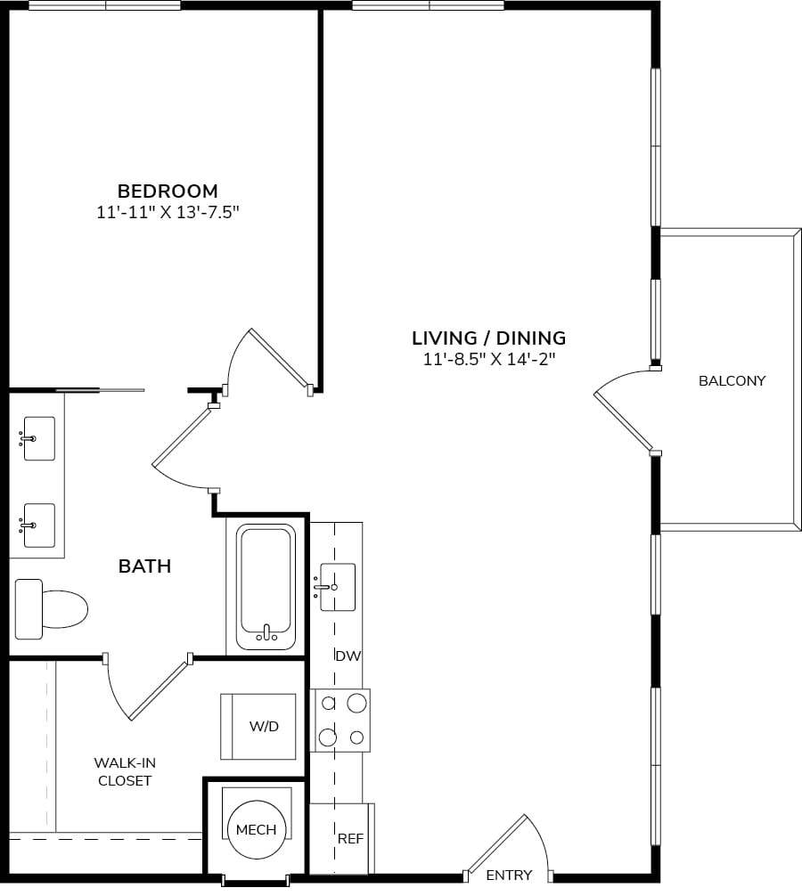 Modelo de apartamento: A4Desde $1,5551 Dormitorio, 1 Baño, 791 sq ftDisponible Ahora![]()