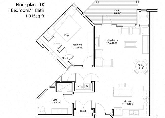 One Bedroom - K - Plano 1 1 Bed, 1 bath