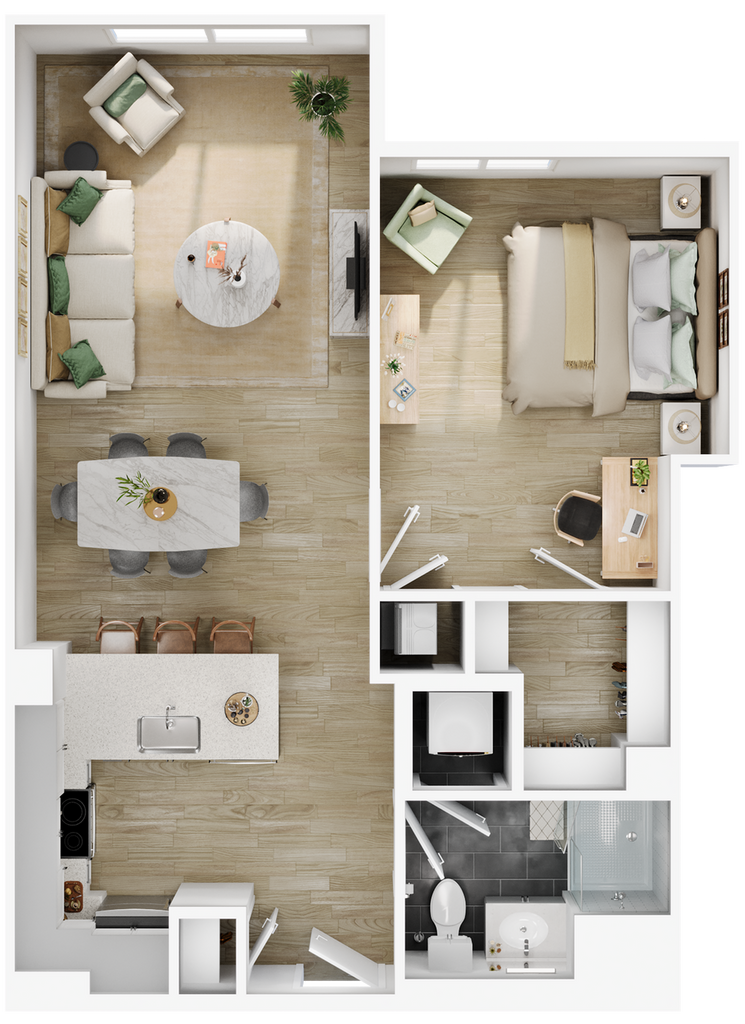 1 Dormitorio, 1 Baño, 600-764 pies²Más CargosDisponible AhoraGalería del Modelo