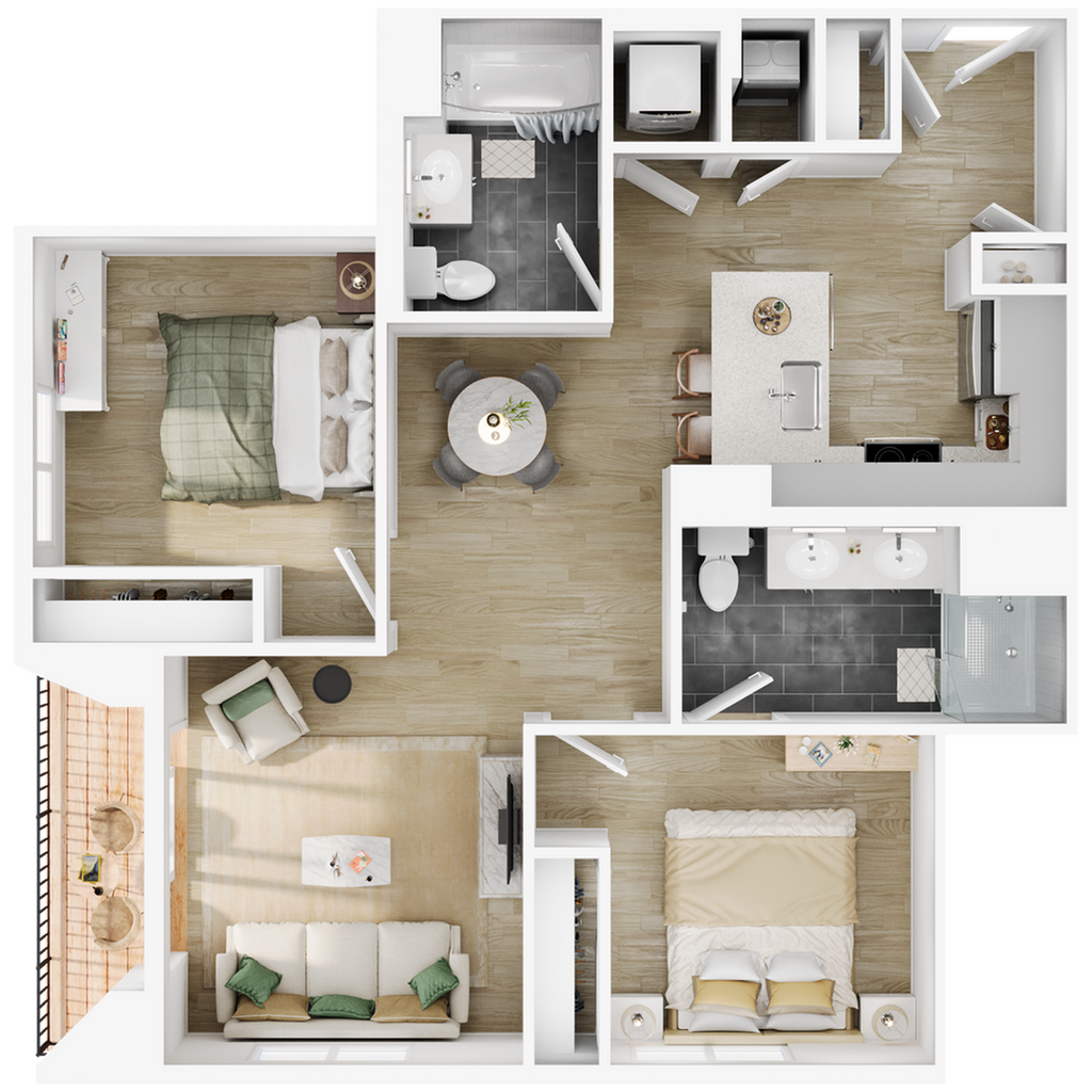Modelo de apartamento: The OakDesde $2,7991 Dormitorio, 1 Baño, 600-764 sq ftDisponible Ahora![]()