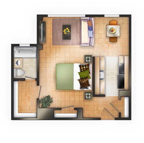 Estudio, 1 Baño, 488 pies²Disponible AhoraGalería del Modelo