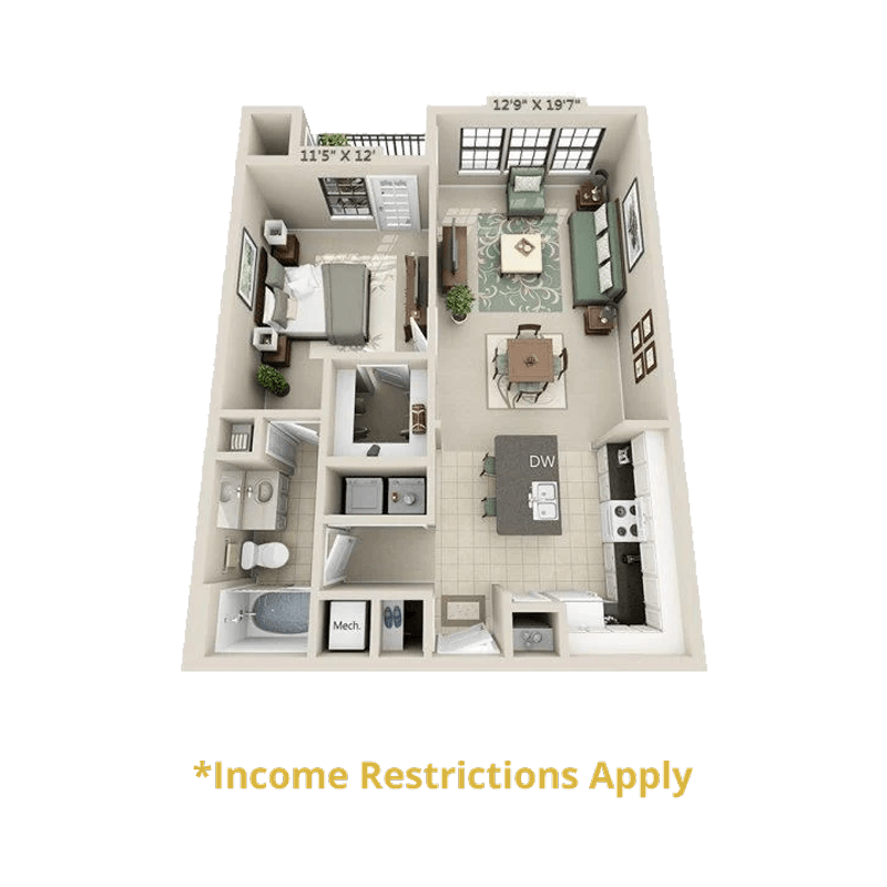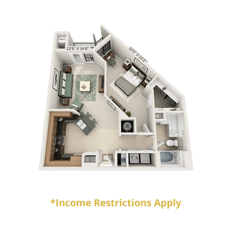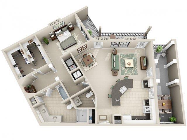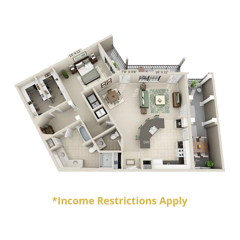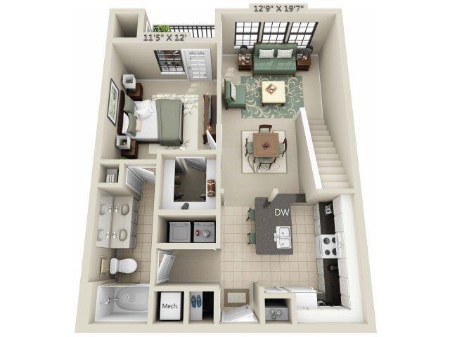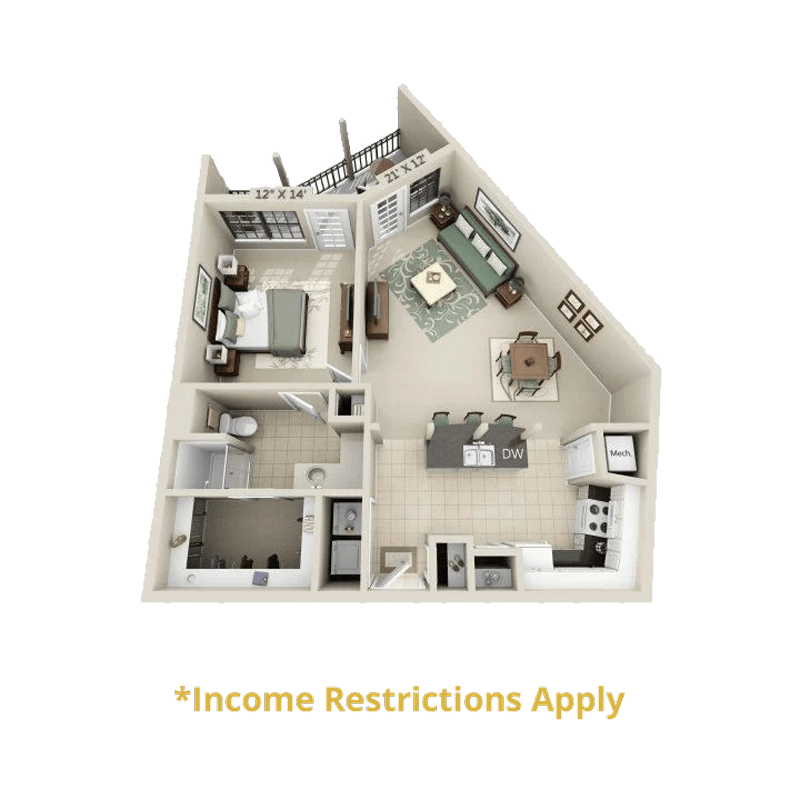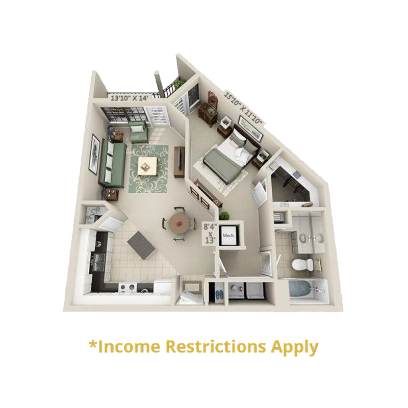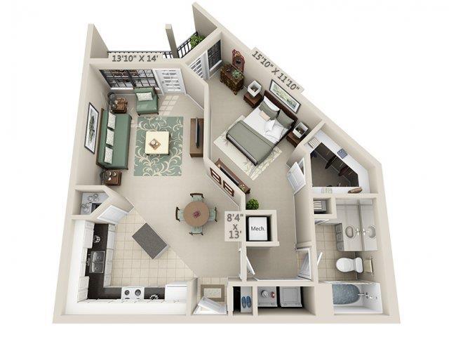 1 Dormitorio, 1 Baño, 839 pies²Disponible AhoraGalería del Modelo