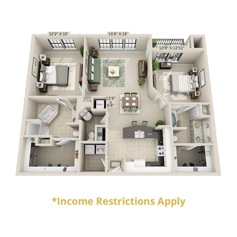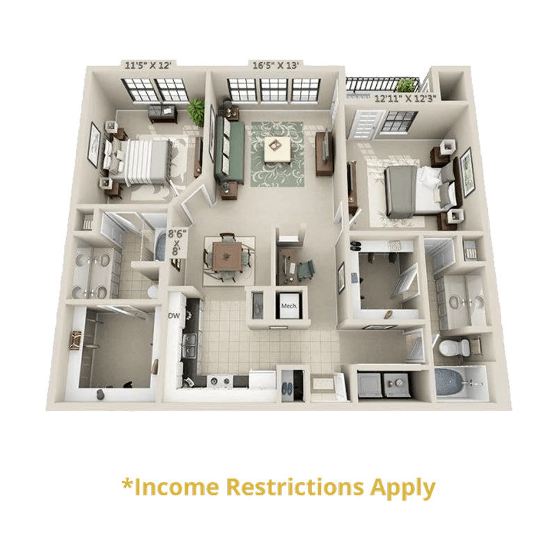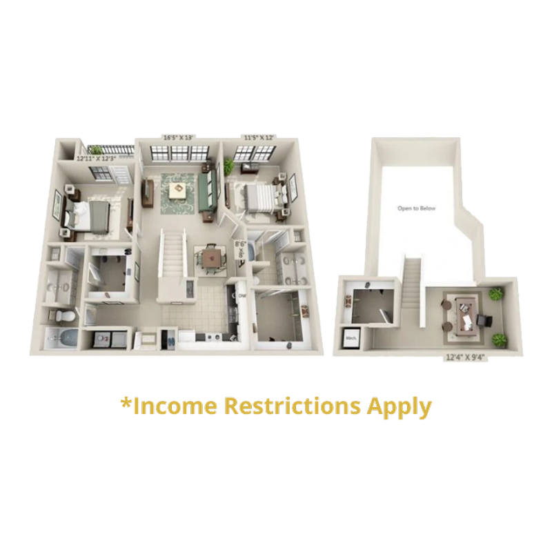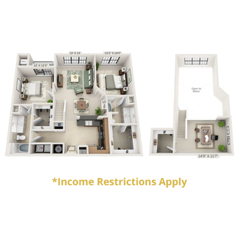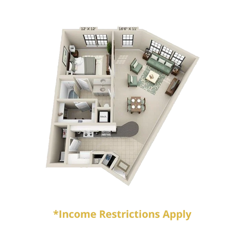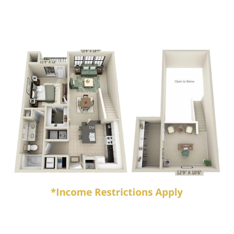 1 Dormitorio, 1 Baño, 839 pies²Disponible AhoraGalería del Modelo