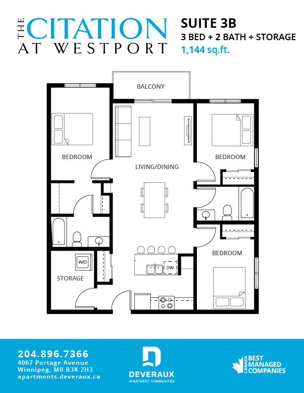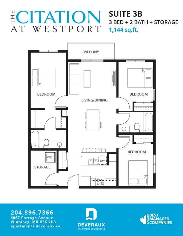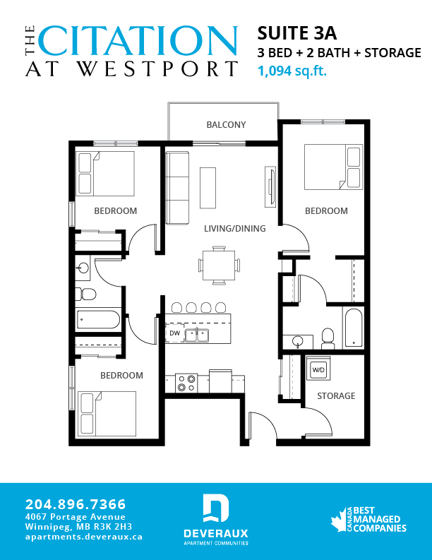 The Citation at Westport is a new luxury apartment community in west Winnipeg, MB. Experience elevated living in our selection of one, two and three bedroom suites that are spacious, functional and modern. Featuring full-size stainless steel appliances, quartz countertops, high-gloss cabinets and in-suite front-loading laundry, the Citation at Westport is upscale renting in Winnipeg.These high-end apartments are pet-friendly and conveniently located to allow for easy access to Portage Avenue and the Trans-Canada, making your commute quick and easy. It is also near the largest concentration of sporting and recreational complexes in Manitoba, meaning there are unending entertainment options in your backyard!