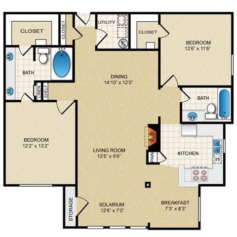 Modelo de apartamento: WAVERLY1 Dormitorio, 1 Baño, 650 sq ftDisponible AhoraPlanosFotos![]()