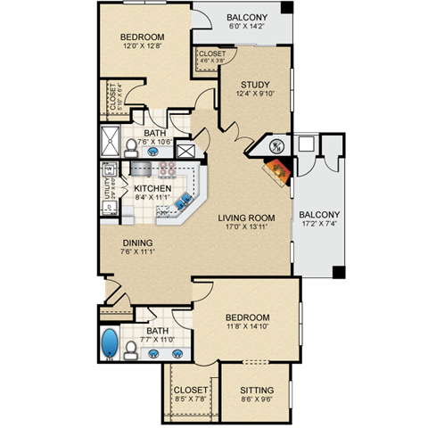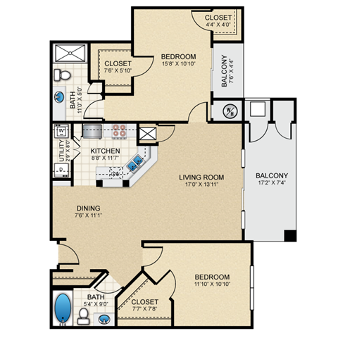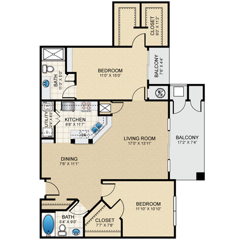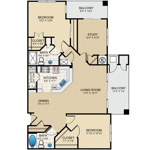 Modelo de apartamento: A2 THE WELLINGTON1 Dormitorio, 1 Baño, 800 sq ftDisponible AhoraPlanosFotos![]()