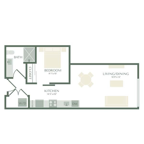 1 Dormitorio, 1 Baño, 492-509 pies²Disponible AhoraGalería del Modelo