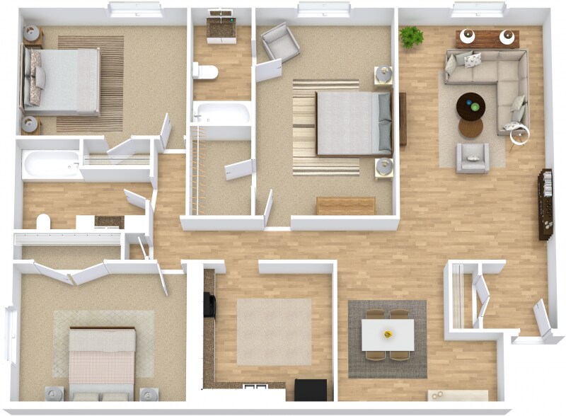 Modelo de apartamento: A6Desde $1,1141 Dormitorio, 1 Baño, 801-821 sq ftDisponible Ahora![]()
