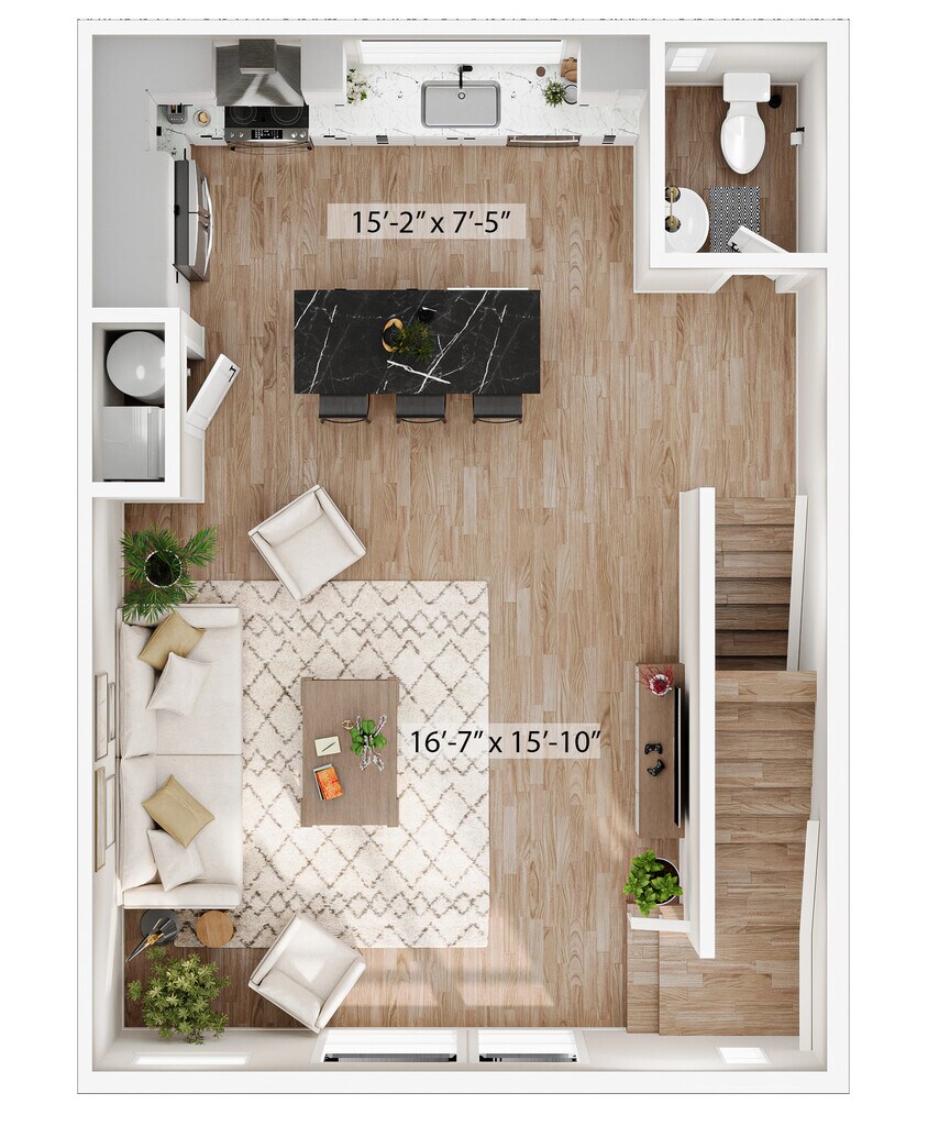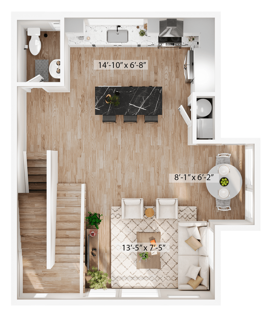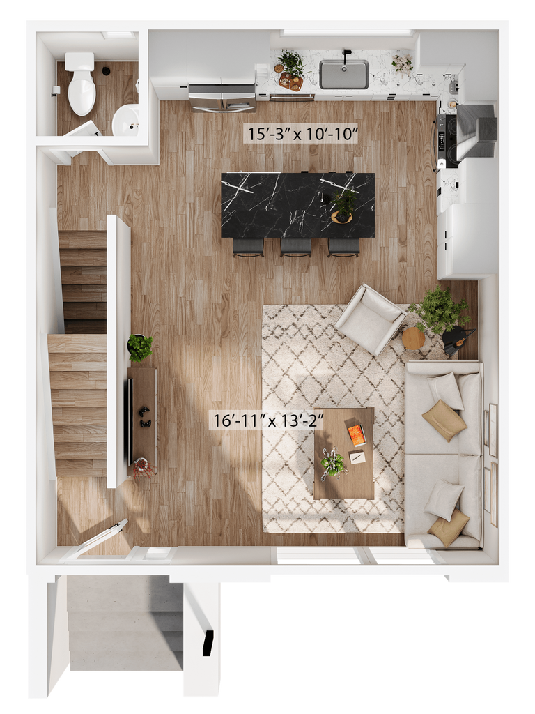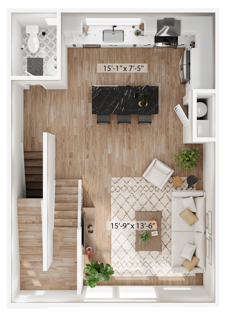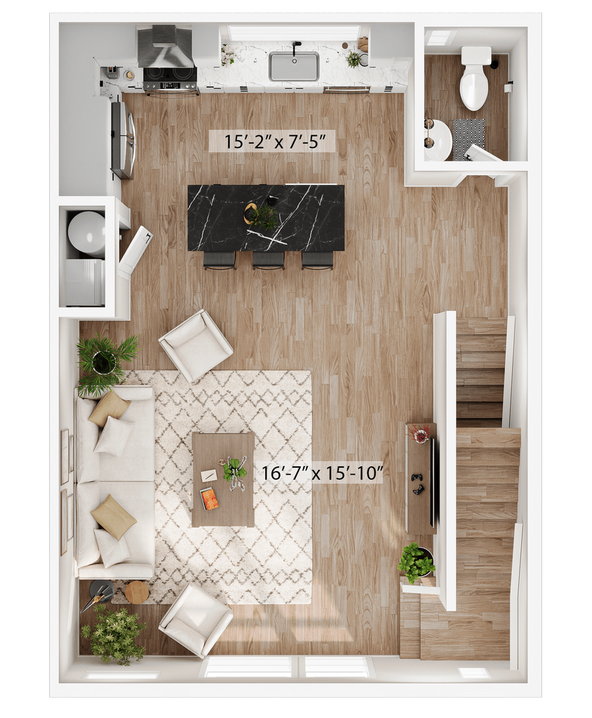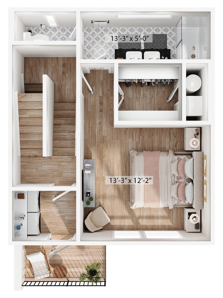 1 Dormitorio, 1.5 Baños, 1315 pies²Disponible AhoraGalería del Modelo